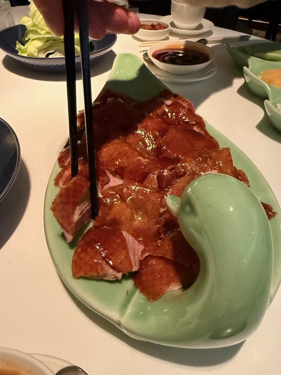 We had to pre-order, so we told the concierge early in the afternoon that we’d like the roast goose for dinner, and they set it up with the restaurant. It was delicious.