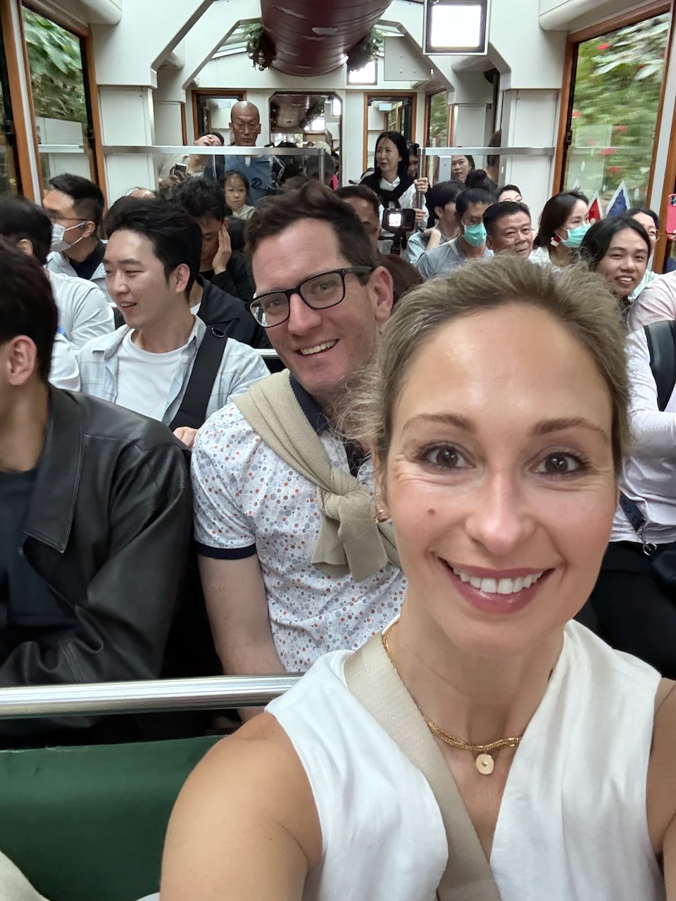 It was almost like a City Bus tour, except nearly free. The cost to ride the tram is nominal. Totally beats sitting in a taxi or Uber, which most of the time have tinted windows and sit low to the ground. One thing to note, though- you pay when you exit and cannot use the same card (or Apple Pay) for more than one person.