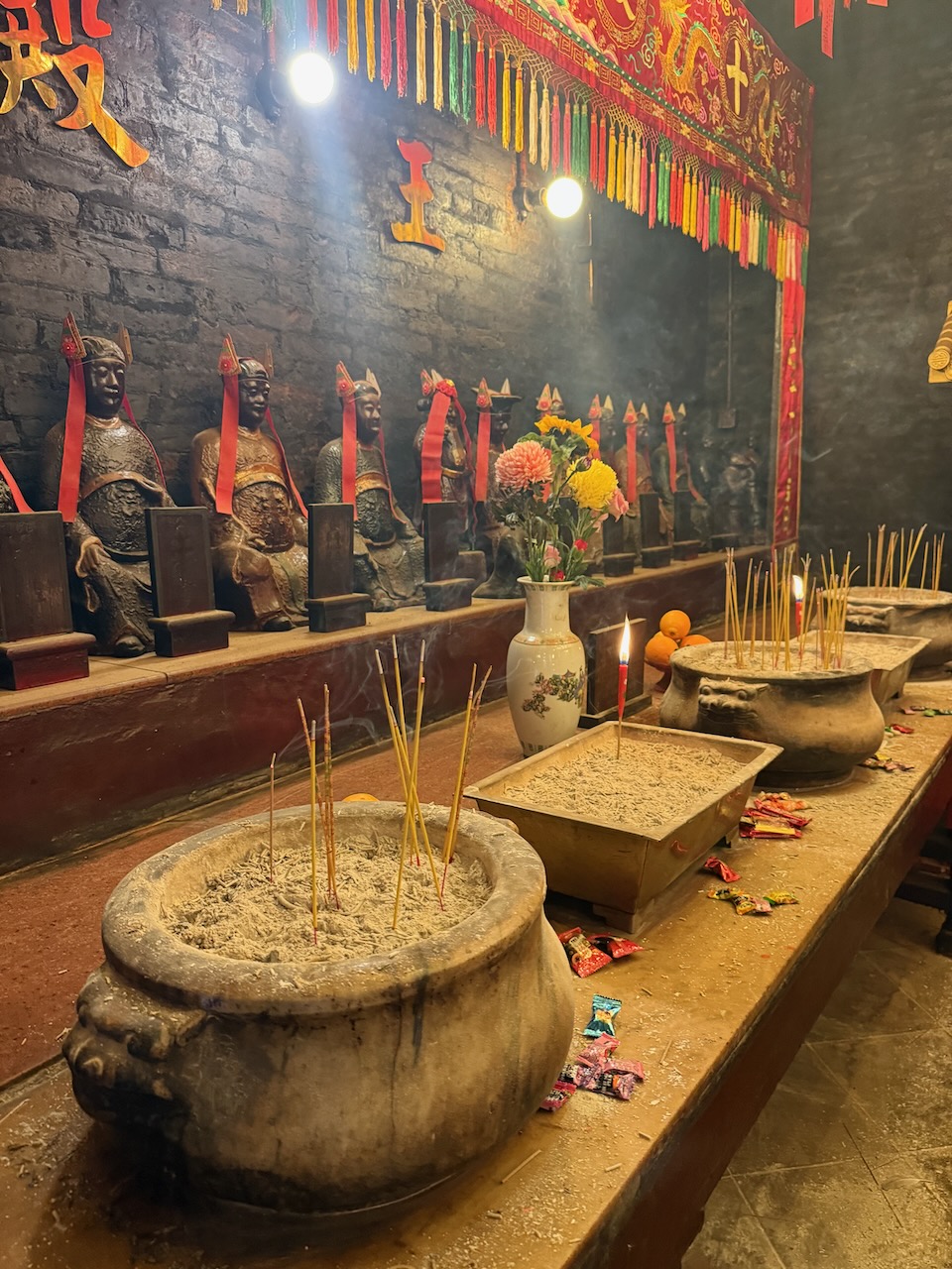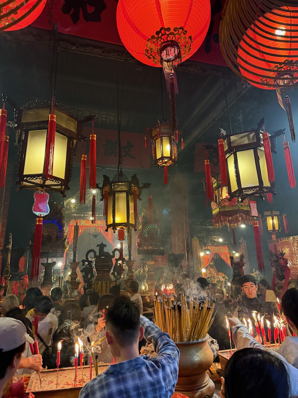 We have seen many temples throughout our travels and are always interested in seeing more. Man Mo Temple is a good example of Qing dynasty architecture and is considered one of the most famous urban temples in Hong Kong.