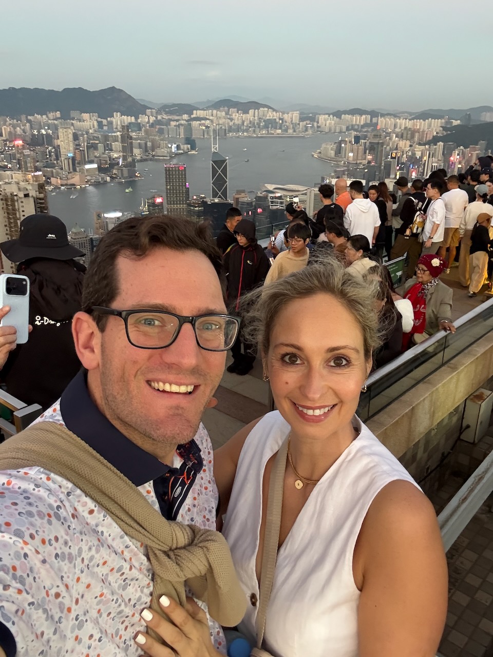 We landed, checked into the hotel, and hit the ground running. As if we didn’t just fly around the globe. But I read that the famous Victoria Peak is the most beautiful (and busiest) during sunset. So of course, we are up for the challenge! Just how busy can it be?
