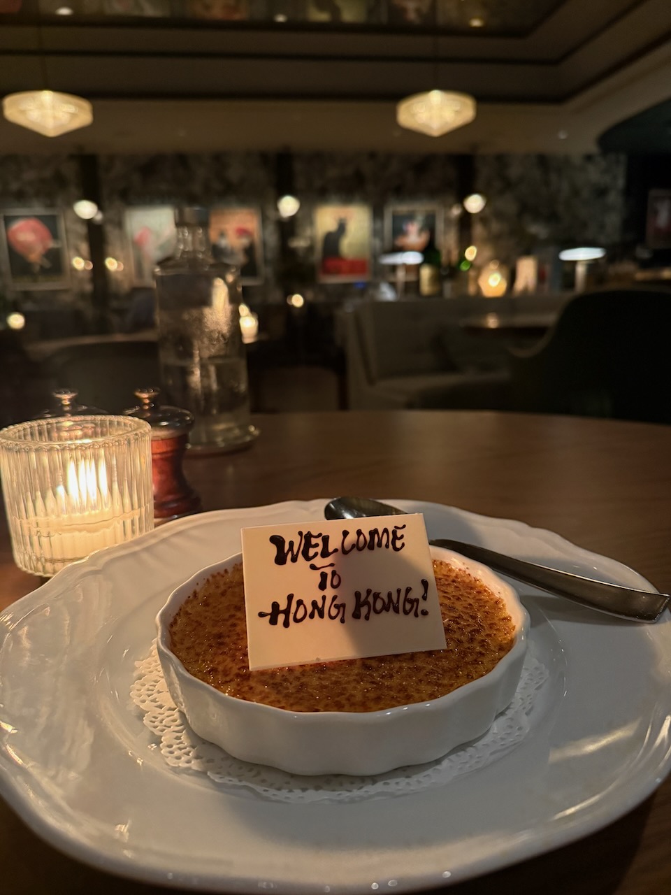 Foie gras, escargots, crème brûlée — voilà ! Also, we had a lovely conversation with the staff- one of the servers was French while the intern was a VERY tall American! We have not met many Americans in Hong Kong and definitely not as part of the staff, so it was fun to chat with him and get his perspective on living there (he loves it).
