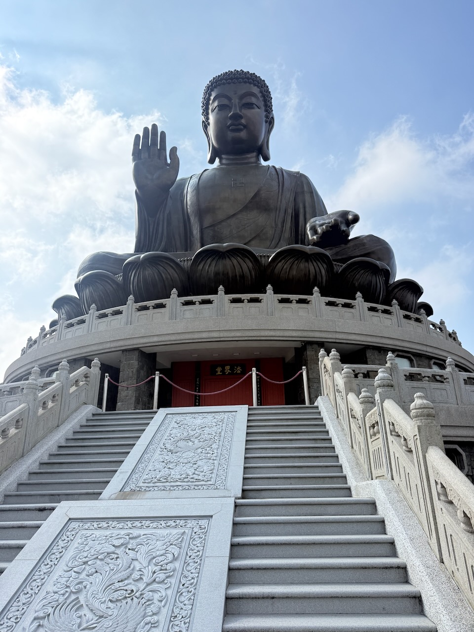 There are some stairs to climb before reaching the Buddha, but nothing excessive. Still, if it’s a hot day, I’d go earlier in the morning. The bronze statue, 34 m (112 feet) tall was built not that long ago, in 1993, but still is very impressive and was worth visiting.