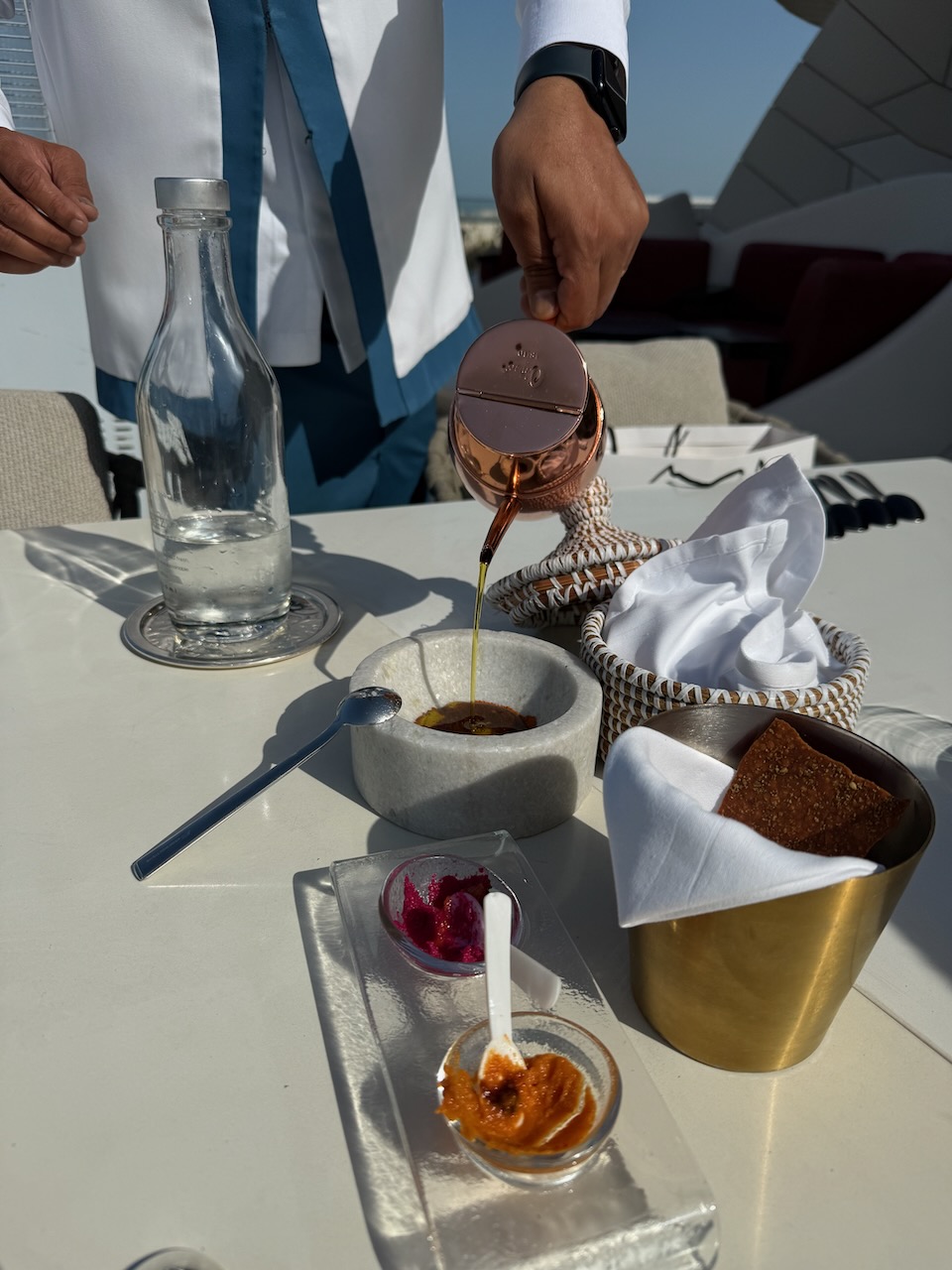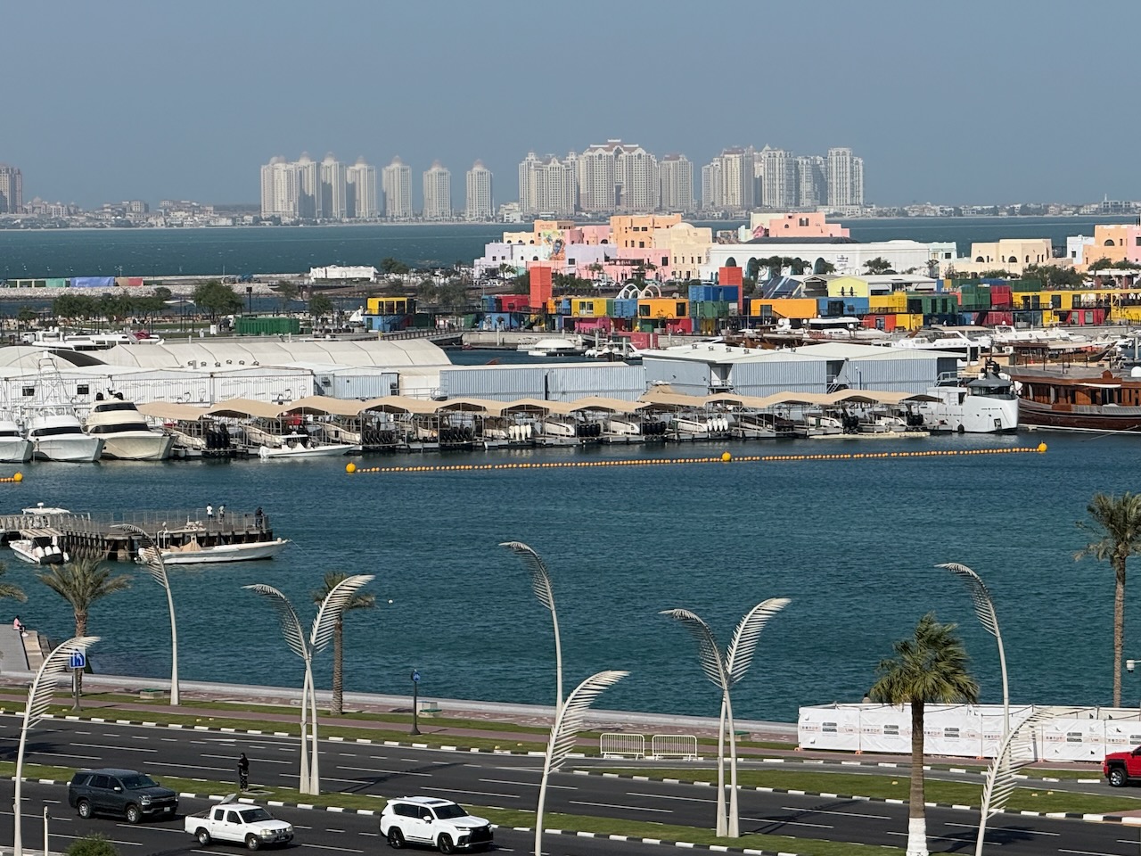 But that would be cheating, so off we go. Well, first we had an amazing breakfast overlooking the Corniche and Doha skyline.