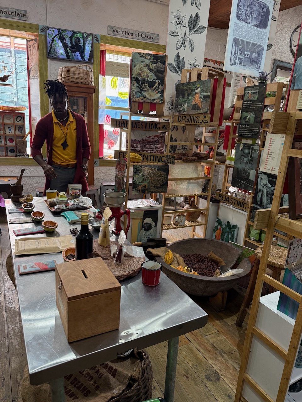 Right across from this little boutique, you will find House of Chocolate– also many local items, mostly food-related. There was a chocolate-making demonstration with some chocolate tasting, so of course we took part.