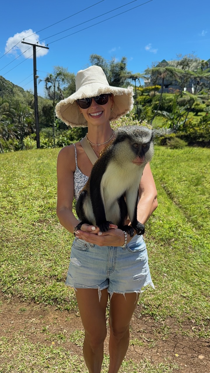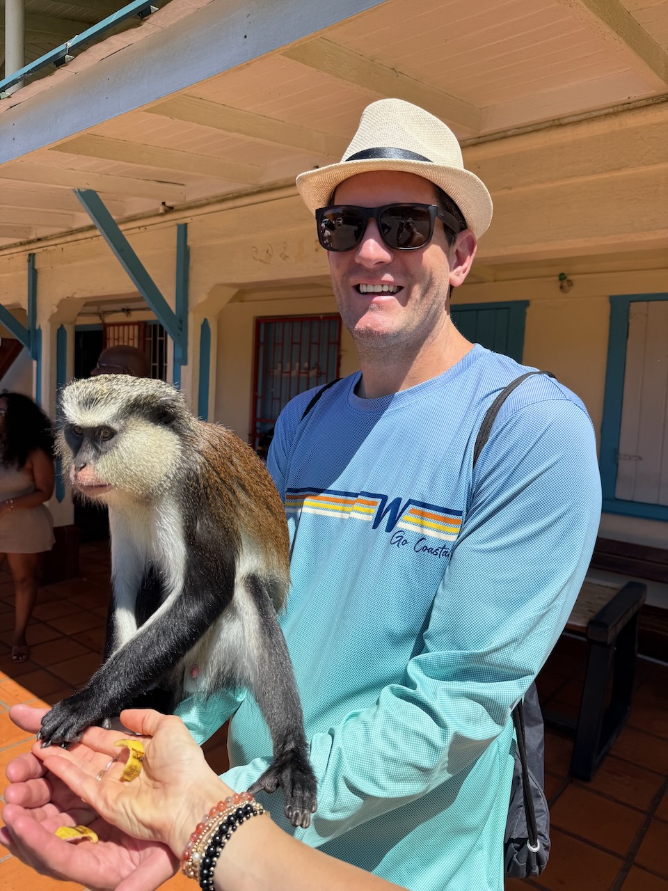 He was not tied to anything, and the guy assured us that it was a wild monkey, but that it was used to people and to being fed. Not exactly what I expected (I thought we would see more monkeys and maybe in the trees), but it was still fun. George was very well behaved, clean, and pleasant to hold.
