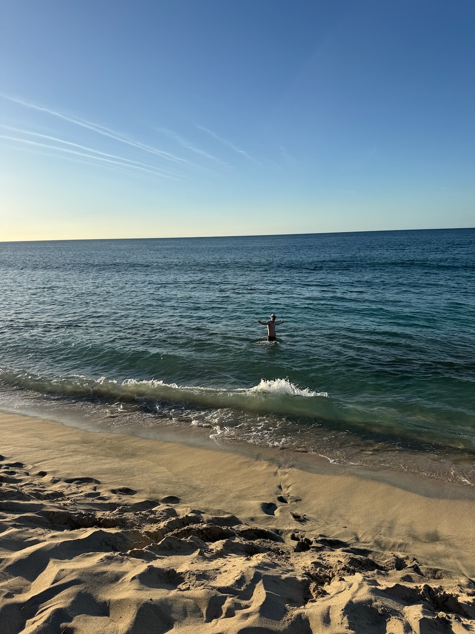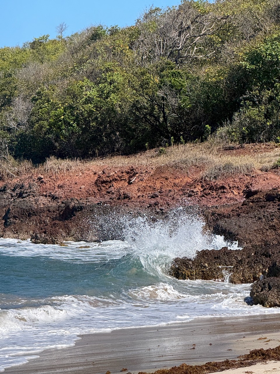 We planned to stay here a bit longer, but after going in to swim, we decided to leave. The rip tide was very strong, and the bottom was not soft sand, but rough, cement-like coral or rocks.